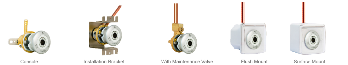 GENTEC gas outlets are designed for delivery of medical gas from a central pipeline system. These outlets are 100% individually tested for leaks to ensure safety. The outlets are designed with safety in mind and comply fully with ISO 9170-1. Outlets are manufactured in an ISO 9001: 2008 and ISO 13485 registered facility.